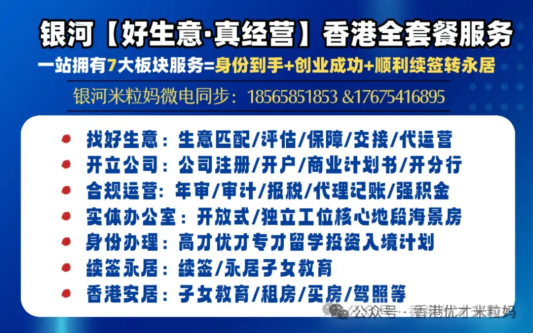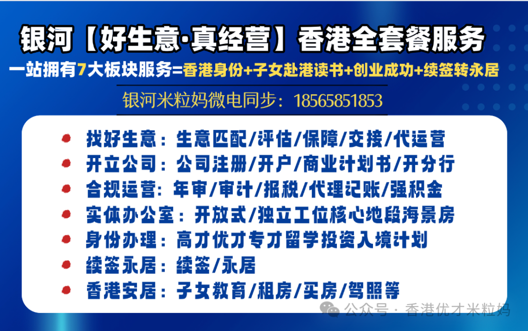 香港高才通计划申请、续签、永居、创业自雇续签咨询和办理都可以DD银河米粒妈,银河【好生意·真经营】为您提供香港全套餐服务(18565851853& 17675416895)