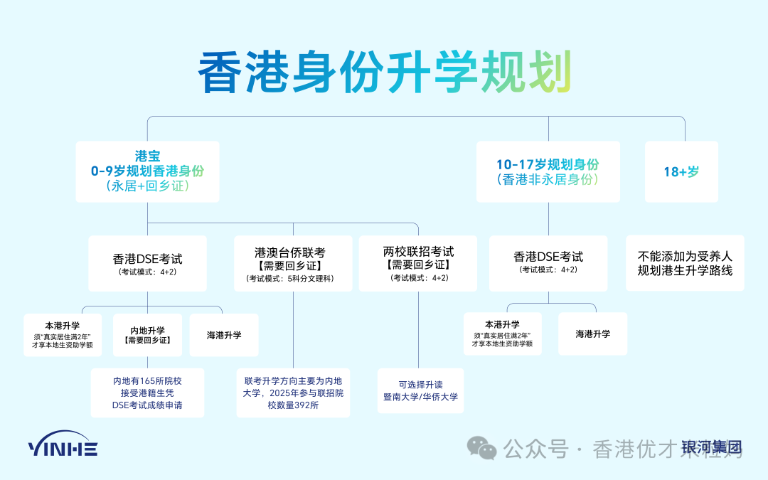 青少年规划(10-17 岁):拿下香港非永居身份,入读香港优质中小学,凭 DSE 考试升学港八大,尊享本地生福利 + 学费减免。
