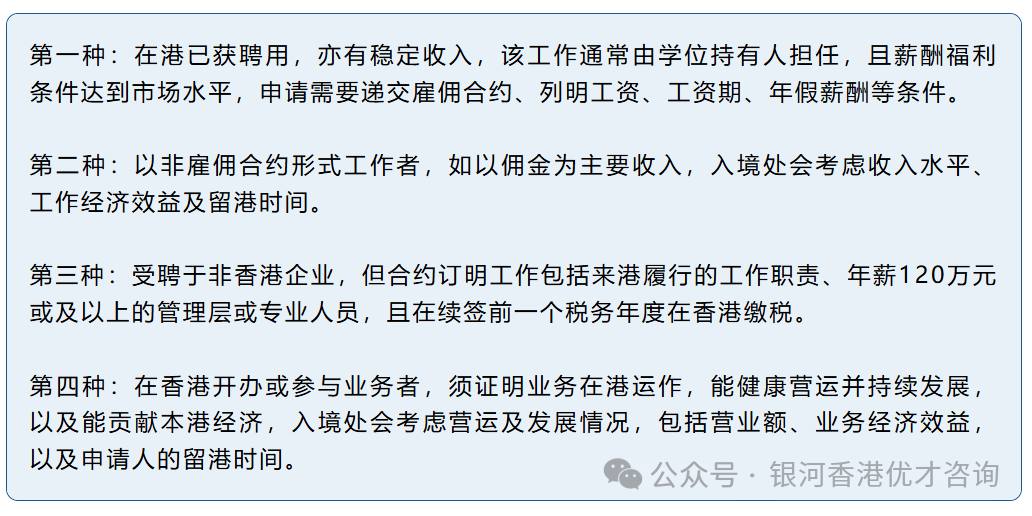 ①申请人必须已经获得聘用,也就是说需要有在港工作;