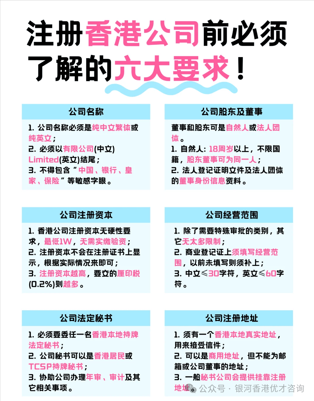 除了香港高才申请的环节需要中介协助之外,注册香港公司和申请续签涉及诸多细节和繁琐的流程,也都需要充分的准备和专业的知识。为确保申请过程顺利,建议有条件的朋友可以寻求专业的中介机构提供协助,例如银河集团。