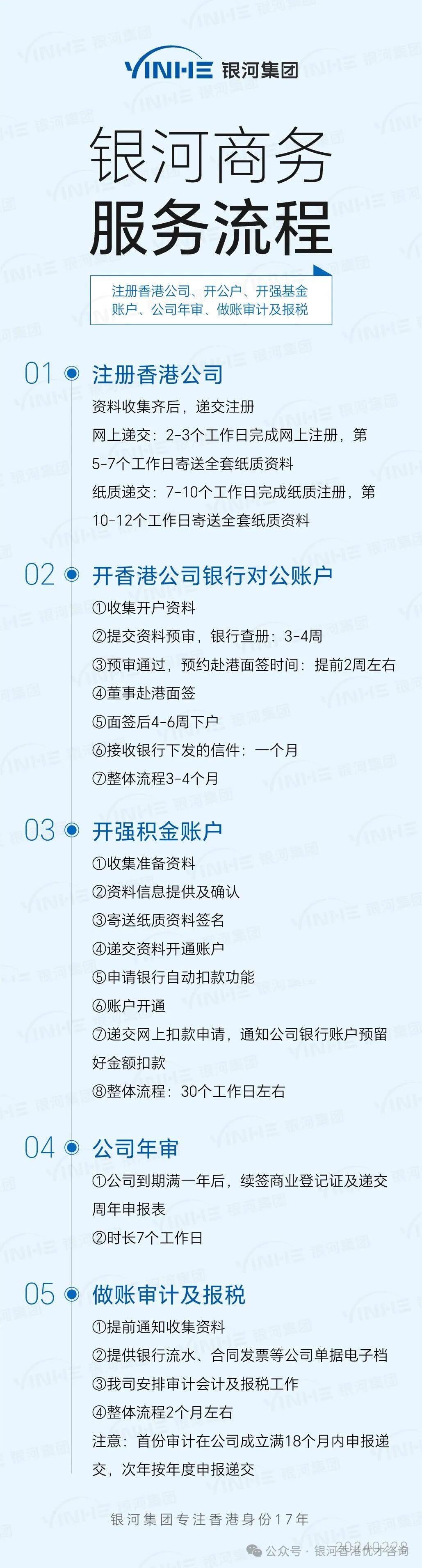 银河集团拥有专业的、经验丰富的商务团队,致力为客户提供香港公司注册、年审、会计审计、税务申报、银行开户、律师公证、税务筹划、境外投资备案、知识产权等一站式企业服务,为客户提供投资规划到落地经营转化过程的解决方案。