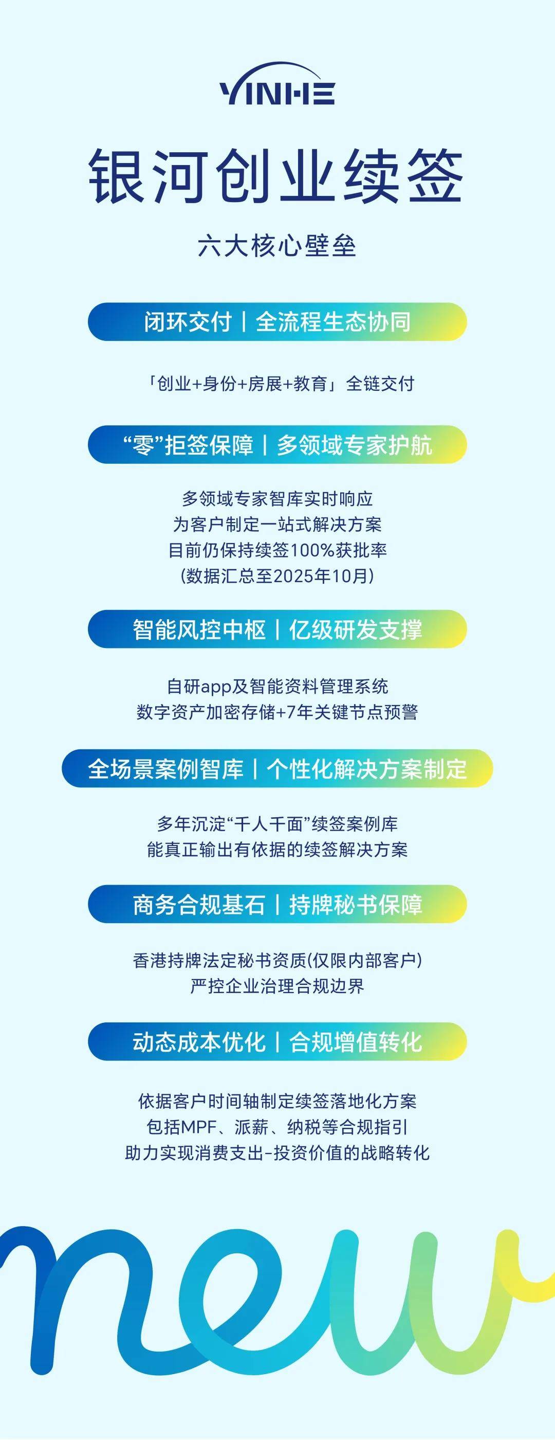 ✔ 续签永居:续签到永居全流程跟进,协助准备续签材料、填写续签申请。银河真经营提供的服务具备“真实地址 + 真实流水 + 真实经营”的特点,严格对标香港永居续签要求,并顺利通过。至今银河仍保持100%续签获批率(数据截至2025年9月20日)。