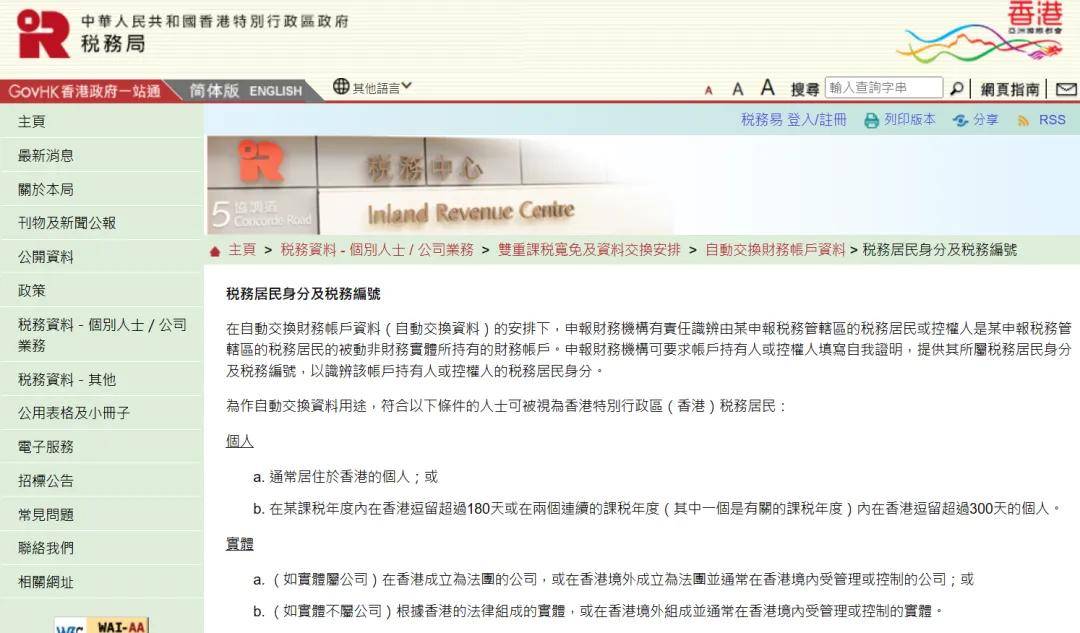 香港税务居民身份:由税务局认定,是享受税收优惠的前提。