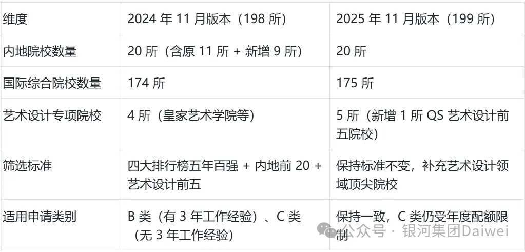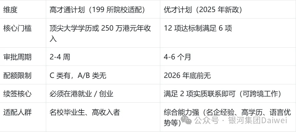 截至 2025 年 10 月,高才通计划累计接收申请超 16 万宗,获批 9.2 万宗,其中合资格大学毕业生占比达 78%。随着 199 所院校名单落地,入境处预测 11-12 月申请量将突破 2 万宗,较去年同期增长 45%。银河Daiwei将结合官方名单细则、申请实操要点与身份规划逻辑,为申请人提供全维度指南。
