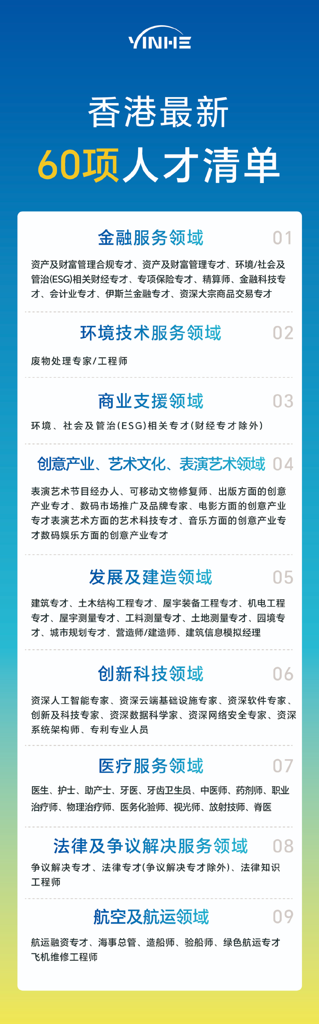 改革要点:2025年的人才清单紧密围绕香港建设“八大中心”的战略方向进行更新,重点吸纳金融服务、创新科技(如人工智能、量子计算)、国际贸易、绿色金融等领域的专业人才。