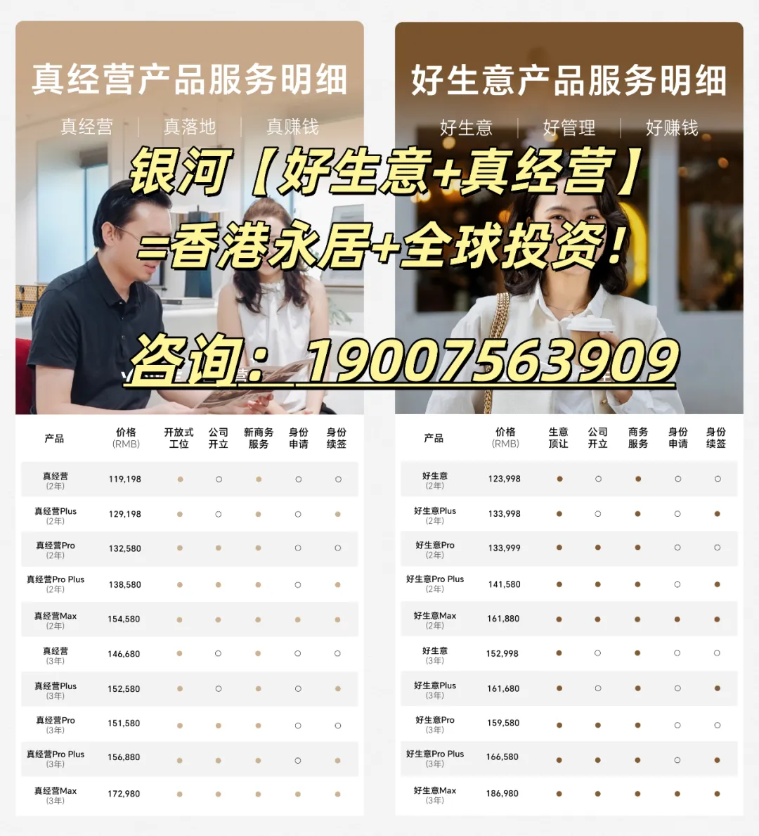 银河集团【好生意·生意星】服务,助力内地企业或个人出海香港,覆盖一站式香港公司需求及香港身份业务,从身份税务到公司业务全面安心落地香港,享受香港低税率政策及便利的全球金融优势,欢迎找我们咨询(19007563909):