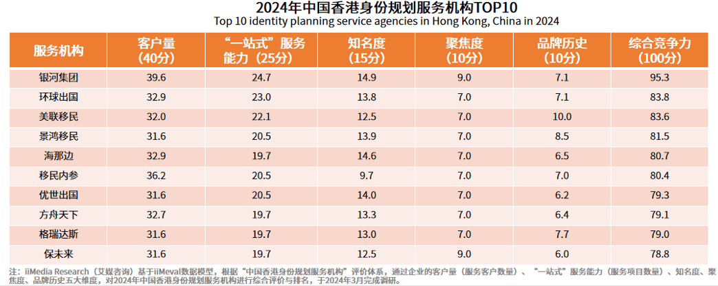 根据艾媒咨询2024年发布的《2024年中国香港身份规划服务市场发展研究报告》来看,香港身份中介市场已形成“一超多强”的竞争格局。