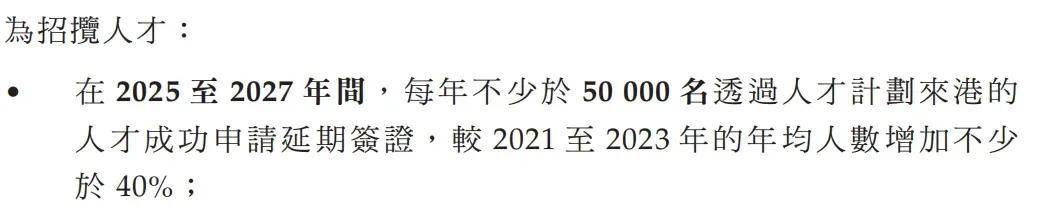 港府的人才政策从“抢人才”变成了“留人才”,定下了2025年到2027年期间,每年不少于5万人才成功申请延期签证(成功续签)的目标,也就是说后期港府重点抓续签!