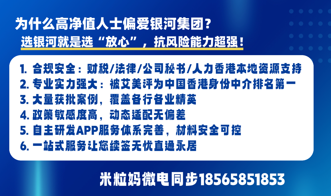 香港优才计划如果你想要了解续签或者开公司续签全流程都可以来找银河米粒妈,银河【好生意·真经营】为您提供全套餐服务。银河米粒妈微电同步(18565851853 &17675416895)
