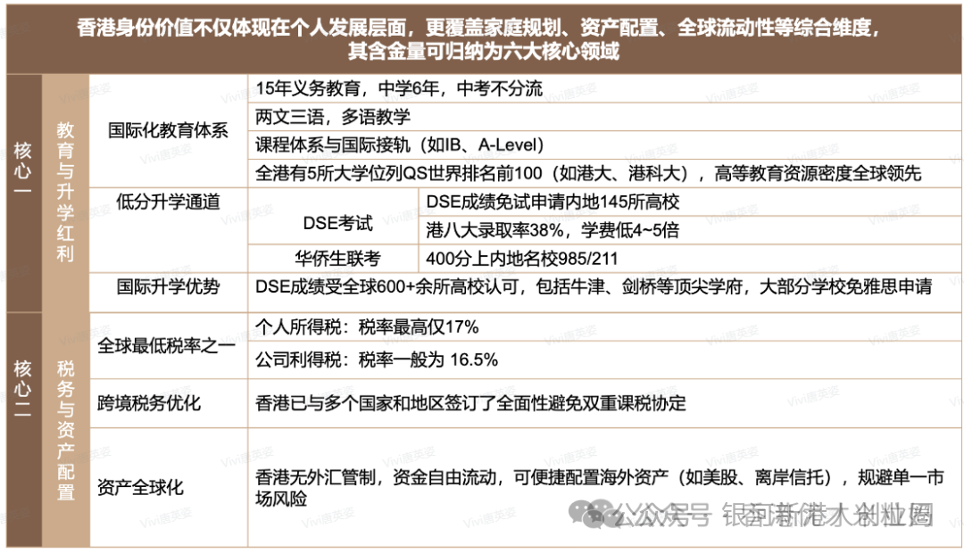 续签后,子女可继续无缝享受香港国际化教育资源:一方面,可免试入读香港公立中小学,接受中英双语并重的优质基础教育;另一方面,以“本地生”身份申请香港八大高校时,录取率高达80%左右,远高于内地生10%的平均水平。同时,仍可通过“华侨生联考”(本科录取率超80%)、“港澳居民内地升学计划”等特殊通道,低分申请清北复交等内地顶尖高校,实现“香港+内地+海外”的多元升学选择。低税负加持,跨境资产配置更便利