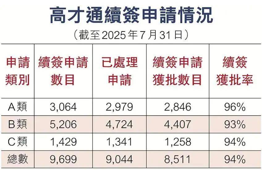 截至7月底,近1.4万名通过“高才通”计划来港人才的逗留期限即将届满。其中,54%已提交续签申请,续签成功率达94%。值得关注的是,约三分之一成功续签的高才并未常居香港。