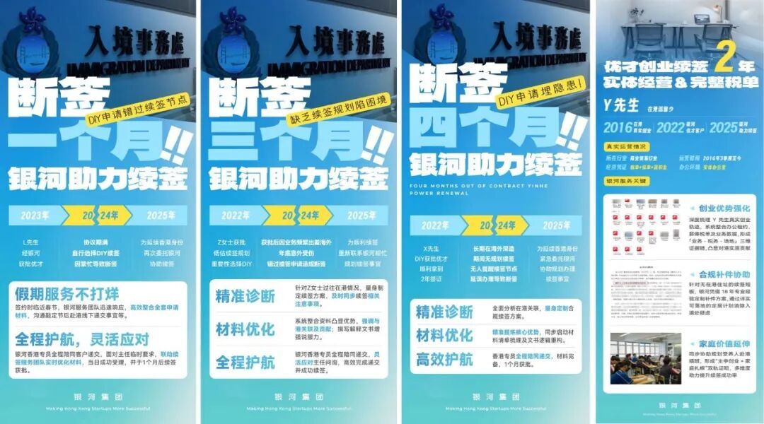 银河集团作为香港身份服务机构中的品牌佼佼者,专注香港身份与创业续签领域,从香港身份办理、项目匹配、资产配置,到后期运营、招聘、续签转永居,全程专业护航。