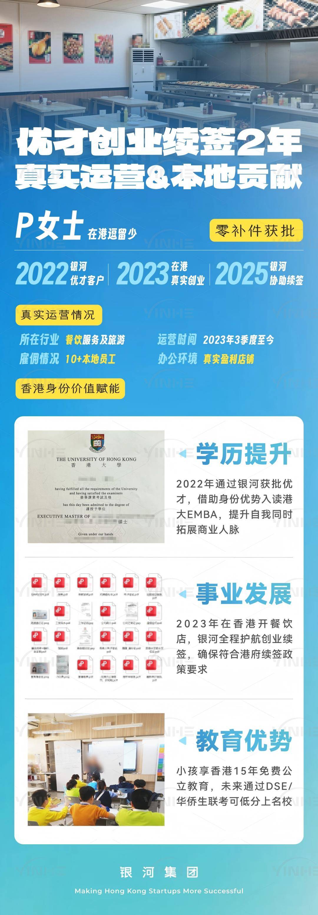 另外,银河集团在香港创业续签上也有丰富且成功的经验,协助了很多精英朋友通过赴港创业,顺利完成了续签、拿到永居身份,不仅有香港身份一站式服务,也有创业一站式服务。