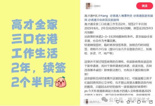 现在,港府的人才政策从“抢人才”变成了“留人才”,定下了2025年到2027年期间,每年不少于5万人才成功申请延期签证(成功续签)的目标,也就是说后期港府重点抓续签!