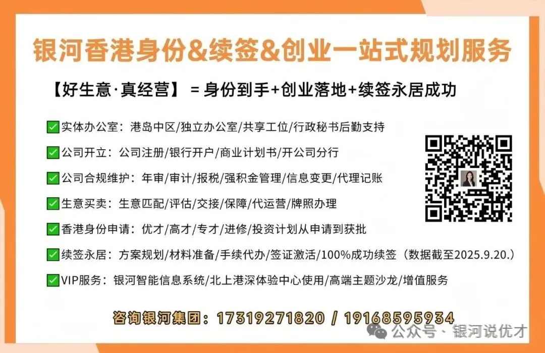 如果您想赴港创业,有注册香港公司、顶让生意、银行开户、税务申报、强积金申报、公司年审、做账审计、办公租赁等企业服务需求,不妨咨询银河集团(电话/微信:17319271820)详细了解,欢迎来司面谈(深圳/北京/上海/香港):