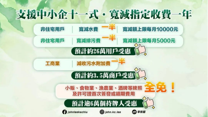 水费及排污费减半:非住宅用户每月最多节省1.5万港元,餐饮企业因豁免污水附加费,每年可节省高达24万港元。