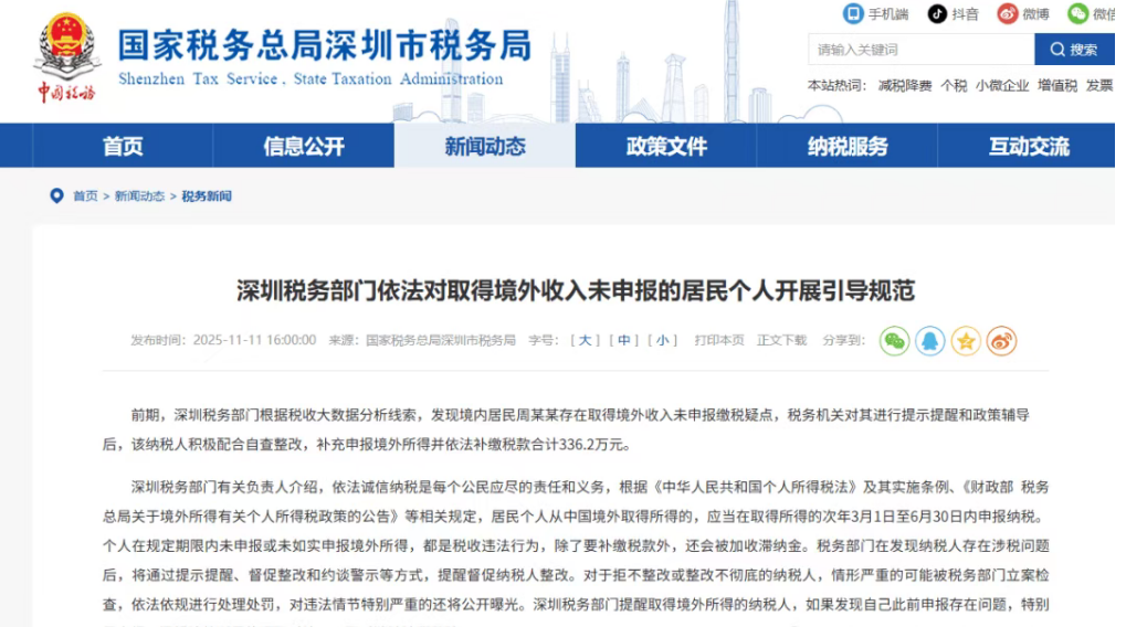 2025年全球CRS税务信息交换机制迎来新一轮升级,多国税务机关数据共享深度与频次大大提升,其中北京、上海、深圳等多地高净值人士陆续收到税务部门发出的《境外所得纳税提醒函》,要求对未申报的境外股息、基金赎回收益等收入进行补税,高净值人群跨境资产透明度面临前所未有的挑战。