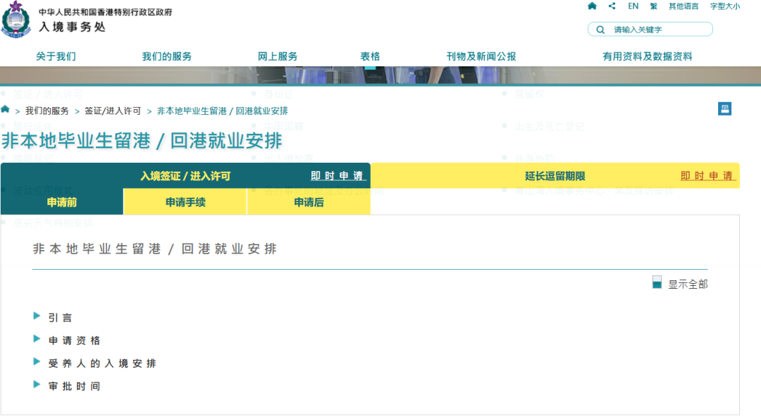 ①毕业生身份:申请人须为在香港高等院校修读全日制经本地评审的本科或以上课程的非本地毕业生,此资格现已扩展至涵盖粤港澳大湾区合作办学机构(如香港中文大学(深圳)、香港科技大学(广州)等)的全日制课程毕业生。
