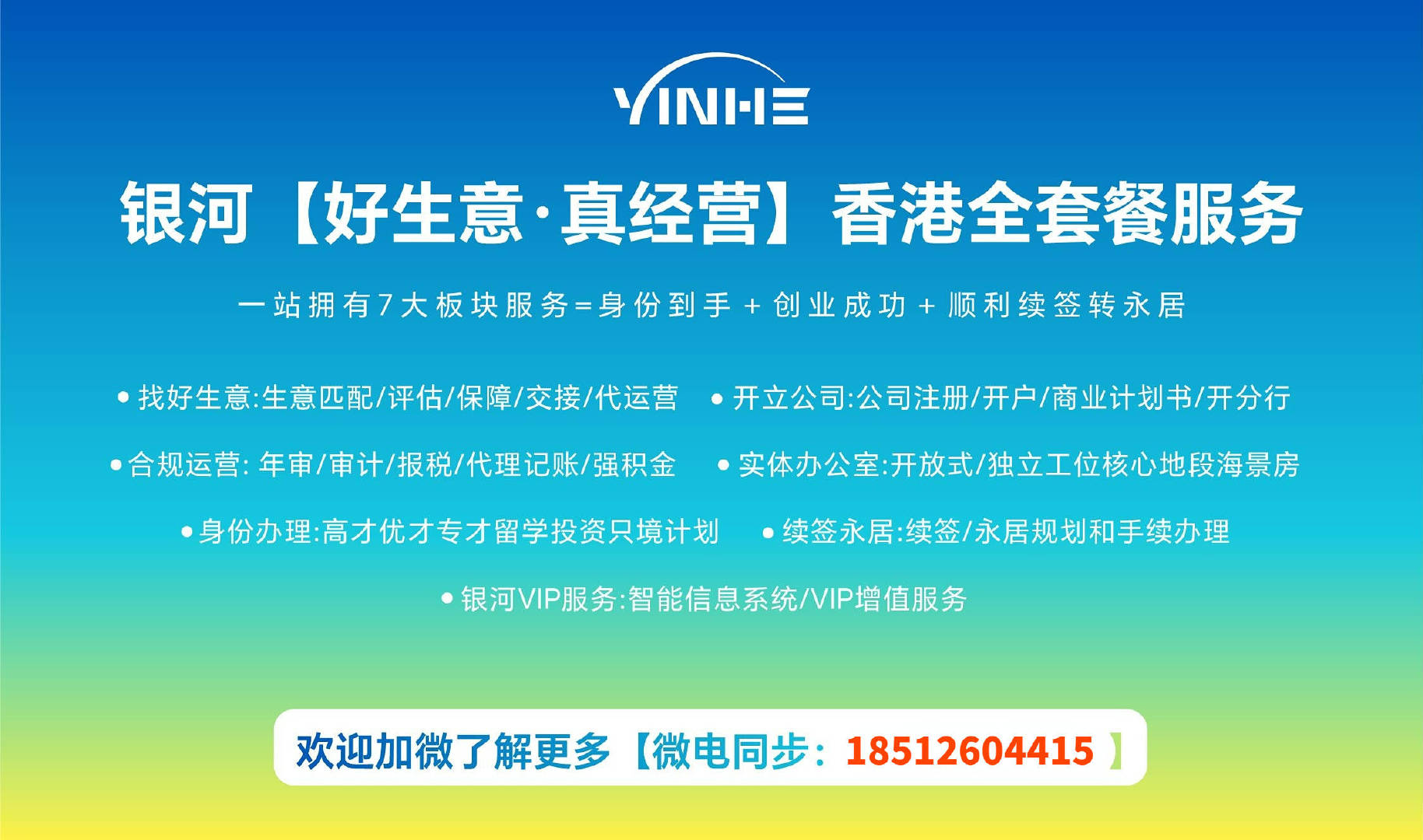 银河集团作为香港身份服务机构中的品牌佼佼者,专注香港身份与创业续签领域,从香港身份办理、项目匹配、资产配置,到后期运营、招聘、续签转永居,全程专业护航。