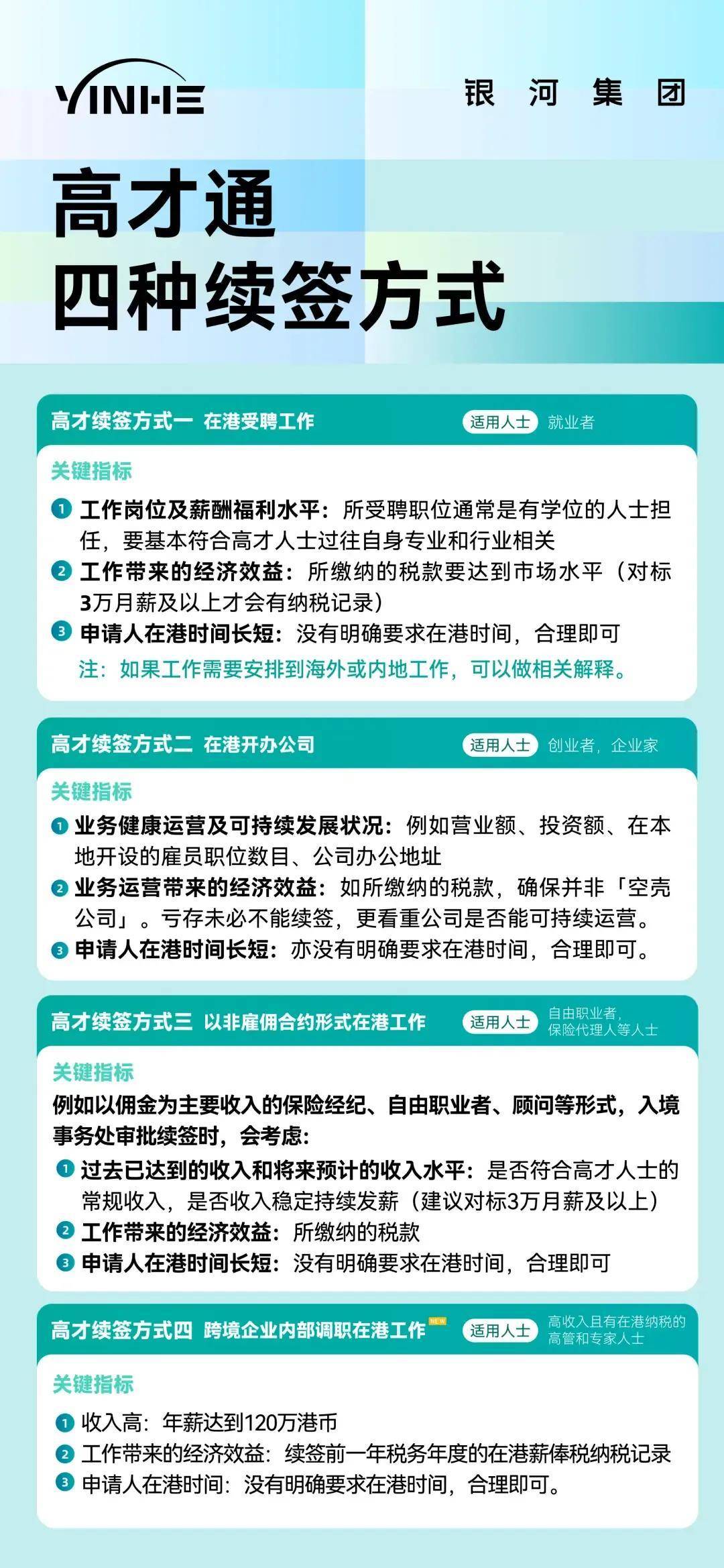 ②顶尖人才通道:若在上一评税年度的薪俸税应评税入息达到或超过200万港币,可申请“顶尖人才”续签,有机会一次性获发6年的续签期限,无需遵循常规的“3+3”模式。