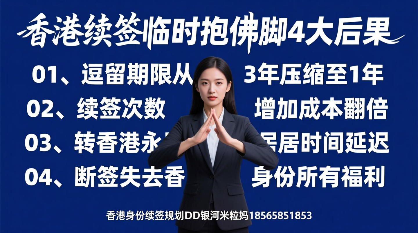 优才及时规划续签,建立和香港充分的工作和生活关联。临时抱佛脚会导致严重后果,逗留期限缩短;续签次数增加,成本翻倍;转香港永居身份时间延迟,更为严重的是断签。