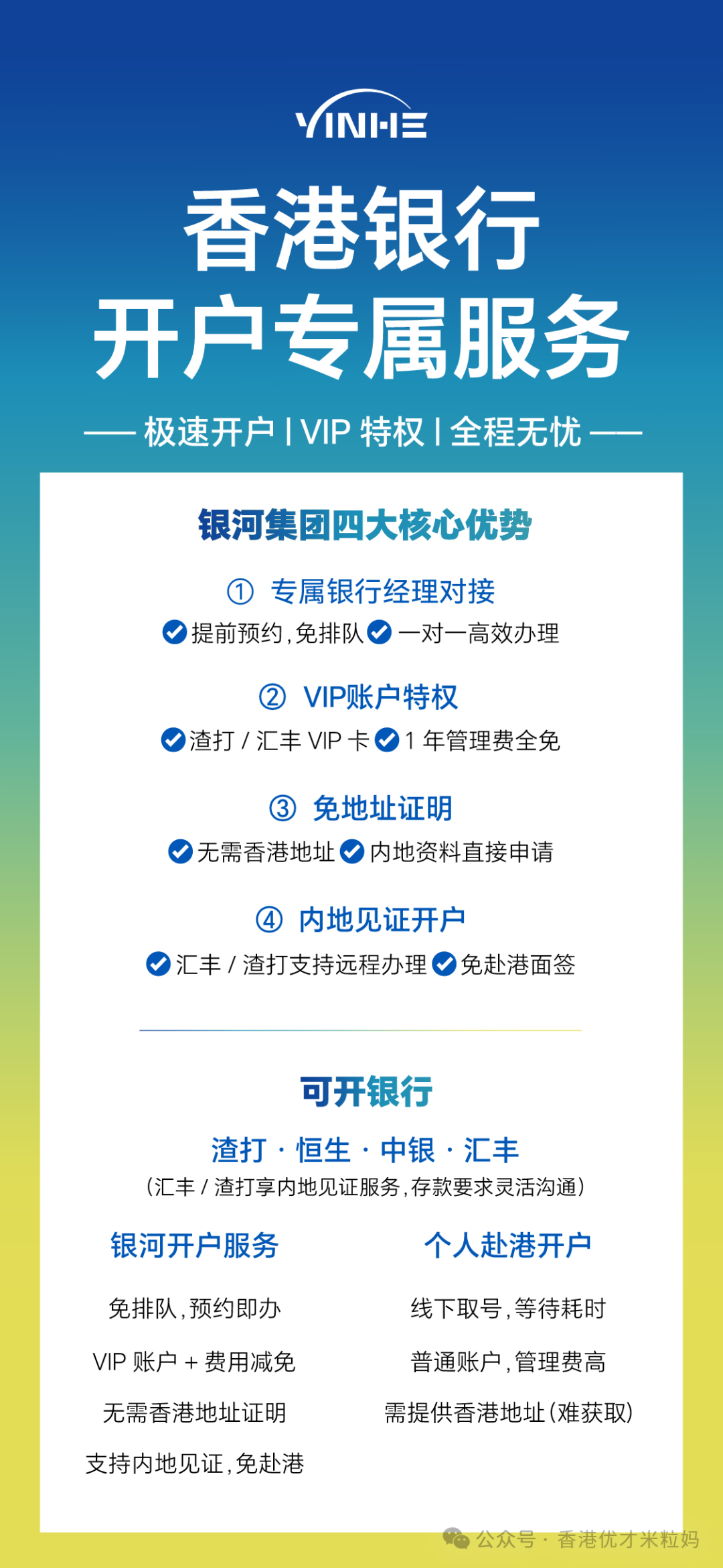 若需一站式解决开户及后续续签相关服务,可咨询银河集团【好生意·真经营】创业续签套餐,涵盖公司注册、开户、年审、审计、报税、强积金办理、信息变更、续签及永居规划等全流程服务;如需单项服务,可联系米粒妈(微电同步:手机见卡片)。
