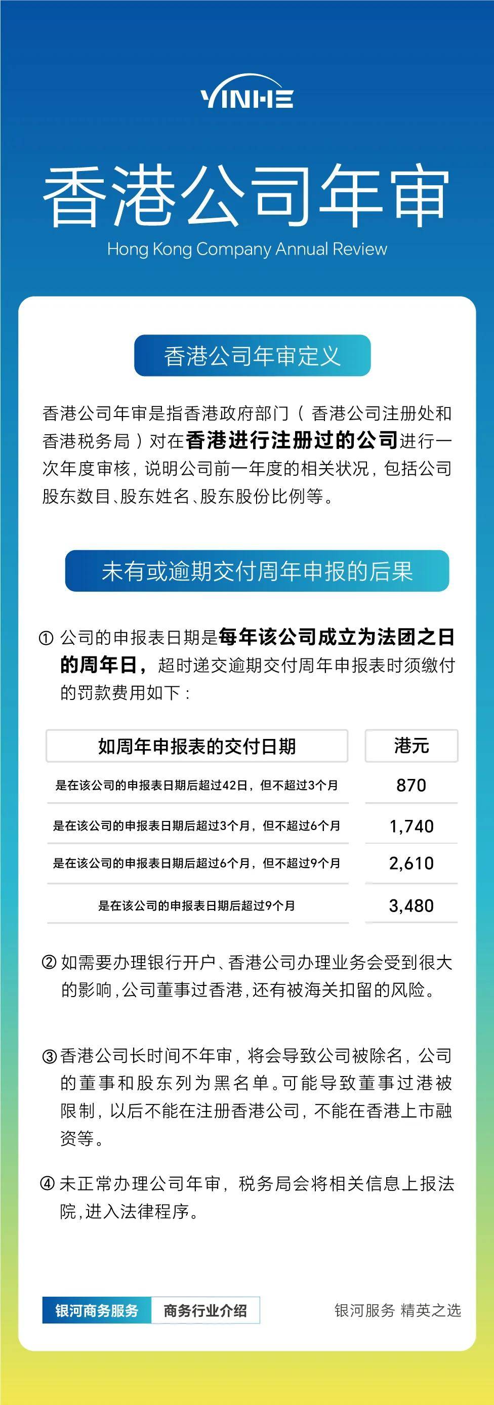 被香港公司注册处认定为 “不活跃公司”,逾期未申报年审 / 商业登记证,会被罚款(最高 1 万港元)、强制注销公司;