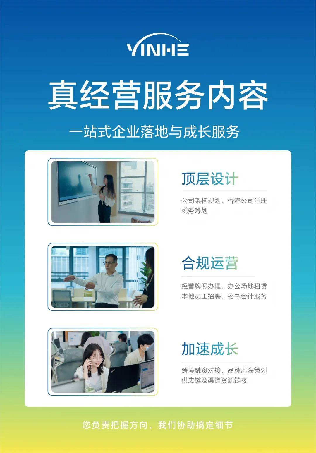 银河集团协助您的公司从「被动代办」到「主动管理」,构建可信任的增长环境,用专业服务护航企业长期发展。