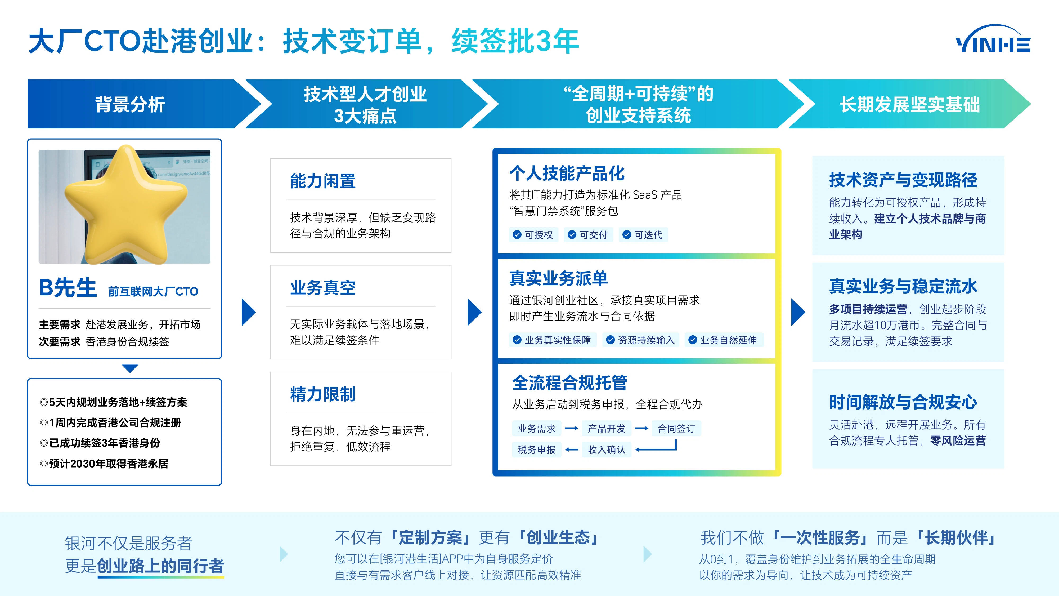 为了帮助新港人顺利续签香港身份拿永居,银河集团提供一系列在香港创业支持的服务,包括开香港公司,或是从0-1做生意,从根本上帮助申请人解决在港创业续签的难题与挑战!