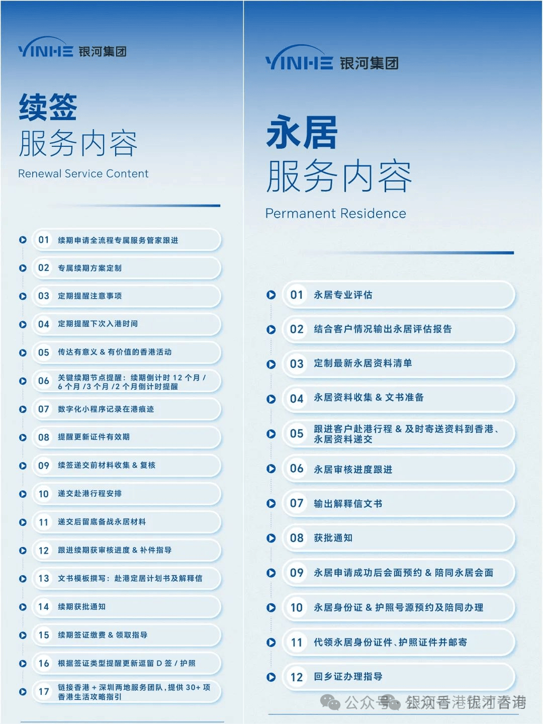 针对香港身份的单项续签申请、或是转永居申请,银河集团均有一站式续签到转永居的服务,能让你省时省力完成续签规划,避免各项琐碎杂事。