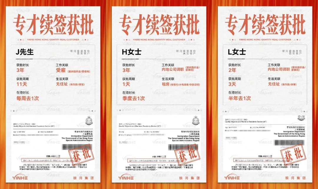 银河集团作为香港人才服务办公室合作伙伴,积累了非常丰富的香港身份成功案例,并且银河在香港享有广泛的人脉资源和强大的品牌实力,满足客户办理香港身份、注册香港公司、购置香港房产、子女香港插班择校等全方位需求。