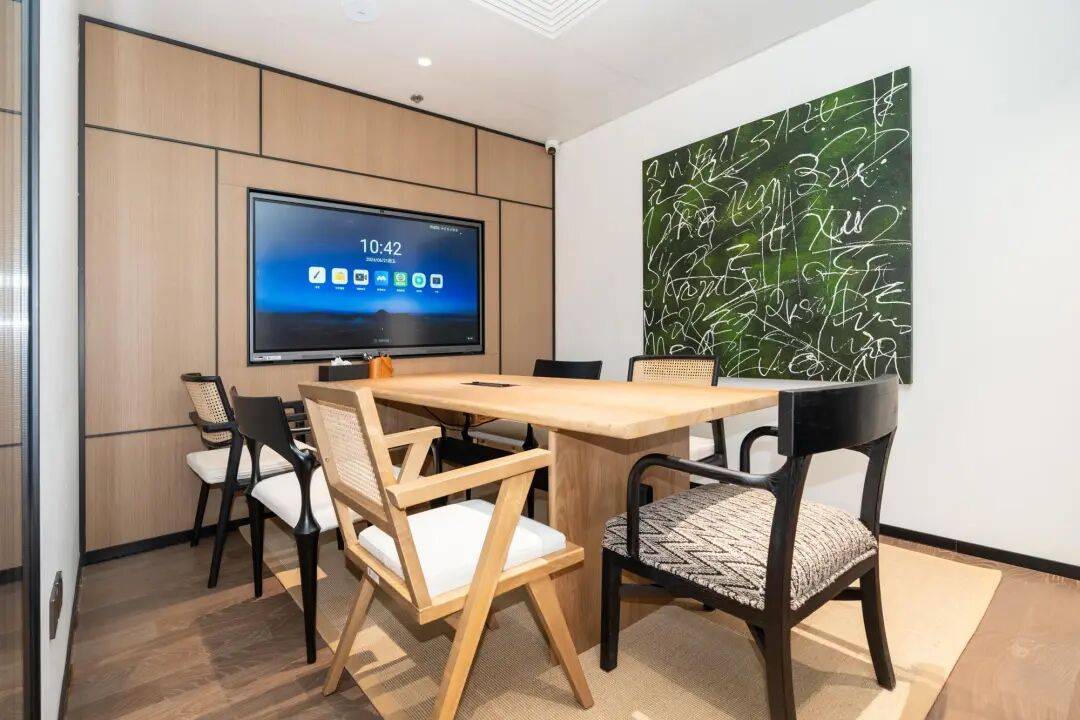 办公空间设计简约轻奢且高效利用,开放式工位配以品牌定制高面板,兼顾开放性与私密性。大面积落地窗引入自然光线与高层海景视野,营造出明亮通透、高端大气的商务氛围。空间内既有开放式工位,也有保障私密性的独立办公室,满足不同创业者的需求。