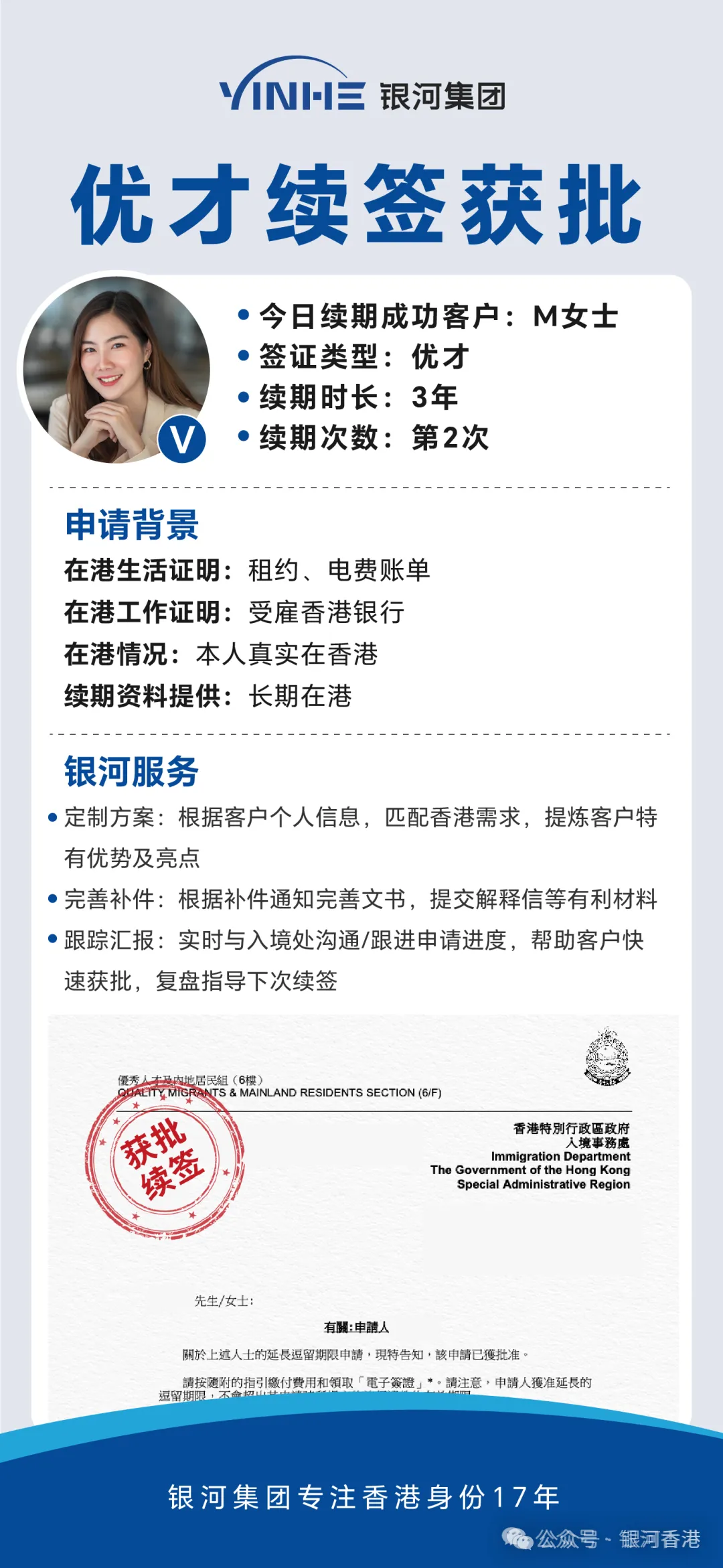 如果你已获批香港身份/优才,可以通过【链接】在线评估下你后期续签或转永居的成功率和续签周期,分数越高成功率越大,只需10s就知道,申请/续签/转永居有问题可以咨询mily(微/电:18512604364)