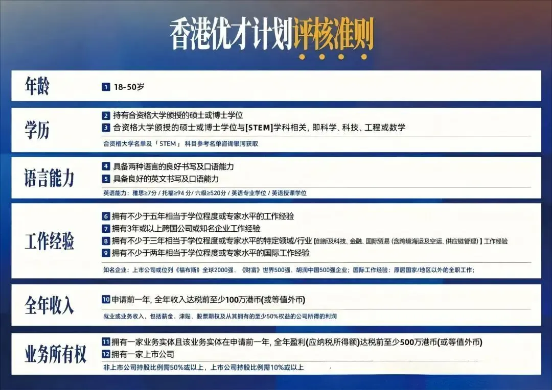 在全新的申请规则下,务必要做好提前规划,以确保每一个环节的顺利,以下我们详细来看看2025年香港优才计划的最新政策、申请条件与续签关键,希望能对大家有所帮助。