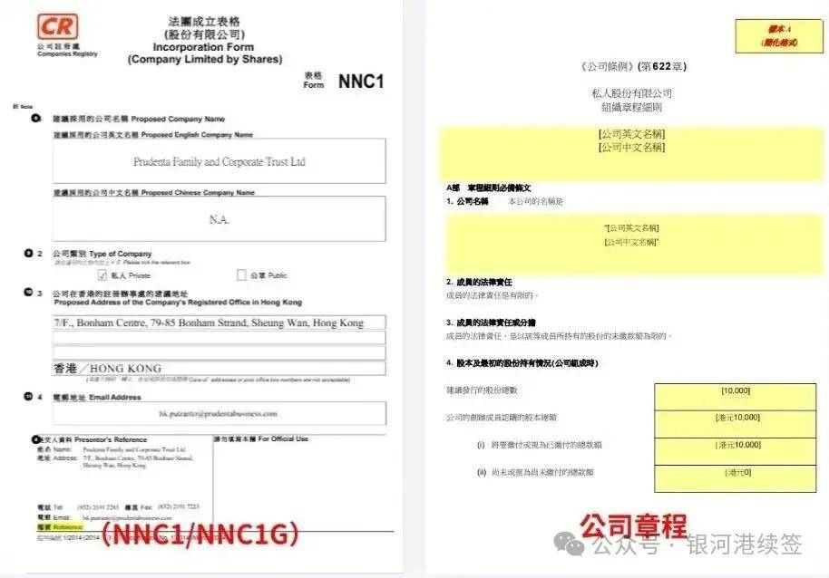 ✔ 法团成立表格(NNC1/NNC1G):填公司基本信息(名字、地址、董事/股东/秘书资料)、股本等