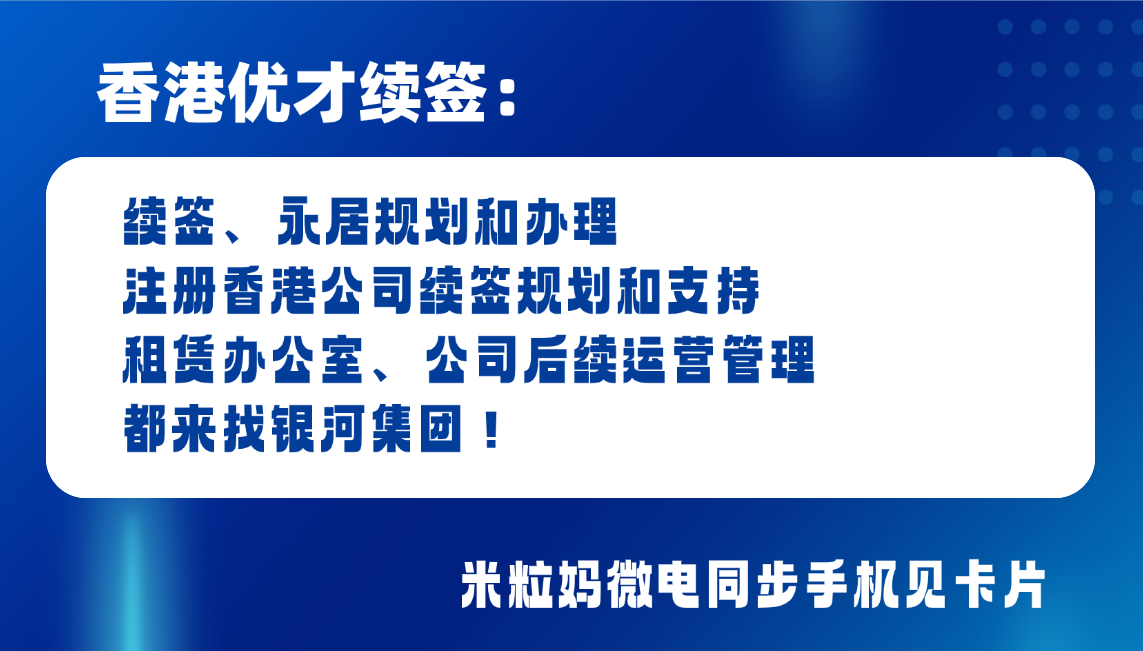 银河【好生意真经营】提供公司开立和商务全流程服务,如果你想要通过注册 香港公司续签优才或者高才,可以直接DD银河米粒妈手机见卡片