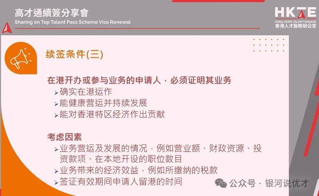 不管是高才通、IANG、优才、专才计划来港人士续签,入境处都非常欢迎人才赴港创业、开办业务,通过这种方式来续签。自雇续签主要考虑以下3个方面: