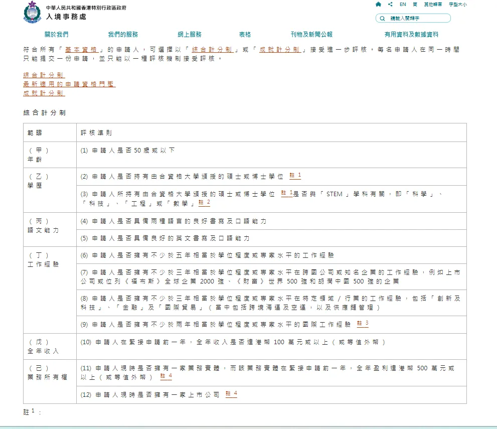 工作:申请人需获得香港公司的正式聘用,所从事的工作必须与其学历或工作经验相关,且申请人的薪资待遇需与本地市场相符。