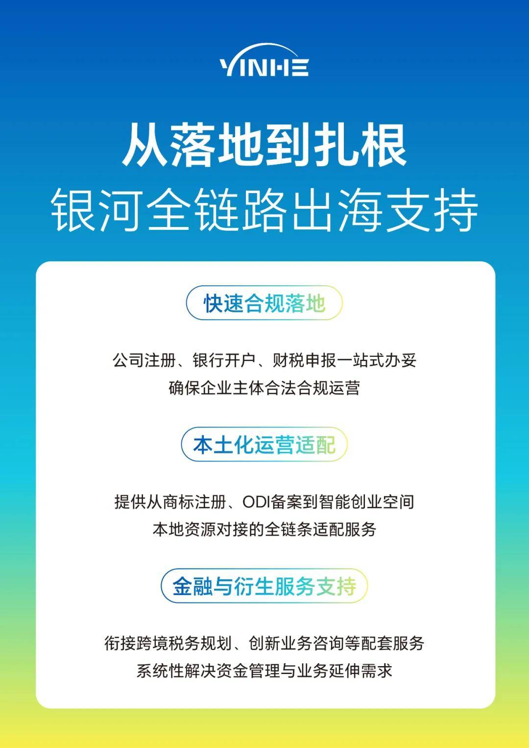面向真经营客户,银河提供八大权益,涵盖税收居民身份申请、工位使用权、劳工险咨询、牌照咨询服务等,全程有专业团队跟进: