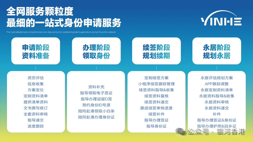 银河集团提供香港身份、高才通申请+续签+永居一站式服务,陪伴客户8年,助力成为香港永久居民!有兴趣申请身份的朋友随时dd银河君mily为您一对一评估和答疑(微信同号:18512604364)