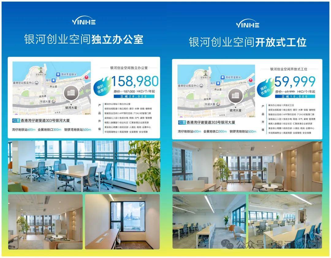 银河共享办公空间位于香港湾仔谢斐道303号银河大厦,针对香港写字楼高租金痛点,推出独立办公室和共享工位两种租赁方案,兼顾成本与合规性: