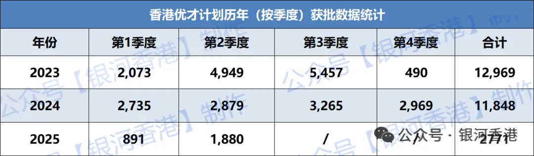 我们可以看到,2025年香港优才计划的热度已经下降,尽管目前依然不限名额,但是申请门槛的提高,优才获批人才的申请热度和获批数量也逐渐趋于一个相对平稳的阶段。