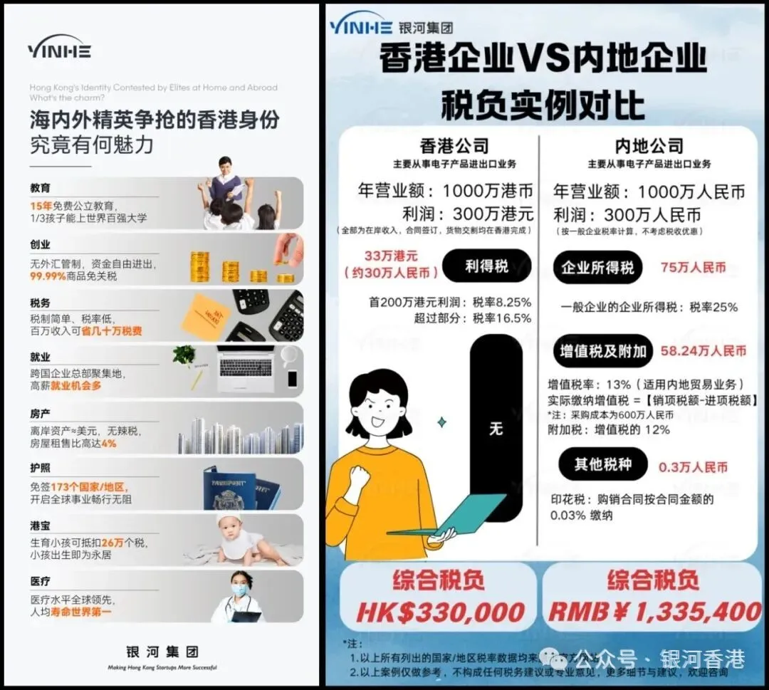 香港税制政策优势:香港收入相对内地更高一些,高收入的同时还低税率,香港的个人薪俸税率最高为15%,每年每人有13.2W港元的免税额,在香港创业的企业主,不需缴增值税、印花税等,利得税率低至8.25%-16.5%,还有免税政策。