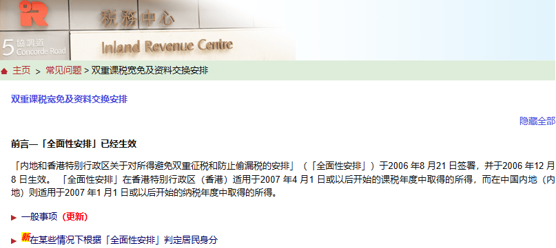 1、中国内地和香港特别行政区全面性避免双重课税安排的常见问题已作出更新;