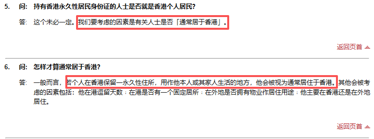 也就是说,最新的政策释义显示出港府更看重“长期定居意愿”,核心看你是否在香港有永久性住所(比如自己买的房),用作本人或家人生活。除此之外,才会辅助参考停留天数、外地是否有居住物业、主要居住地等因素。