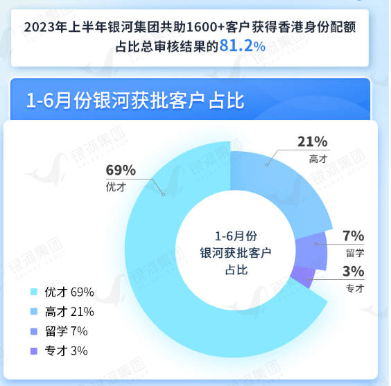 2023年1~6月,银河集团一共助力1600+客户获得香港身份,配额占比银河总审核结果的81.2%。