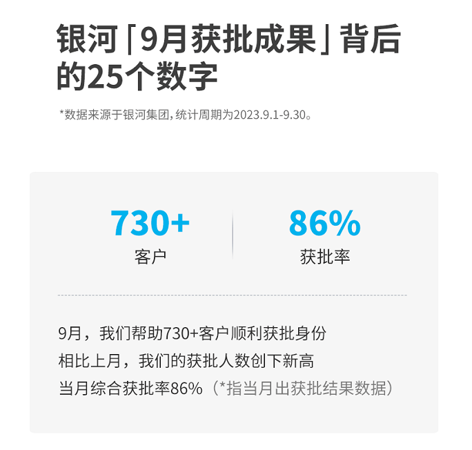 9月银河一共助力730+客户获批香港身份,获批率高达86%。