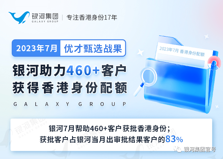 2023年7月银河集团帮助了460位客户获得了香港身份配额,获批客户占银河当月出审批结果的83%。