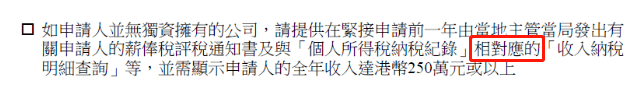 这250万港币指的是应缴税收入,如未缴税的收入不能计入其中。所以,纳税不够的,是不符合申请条件的。