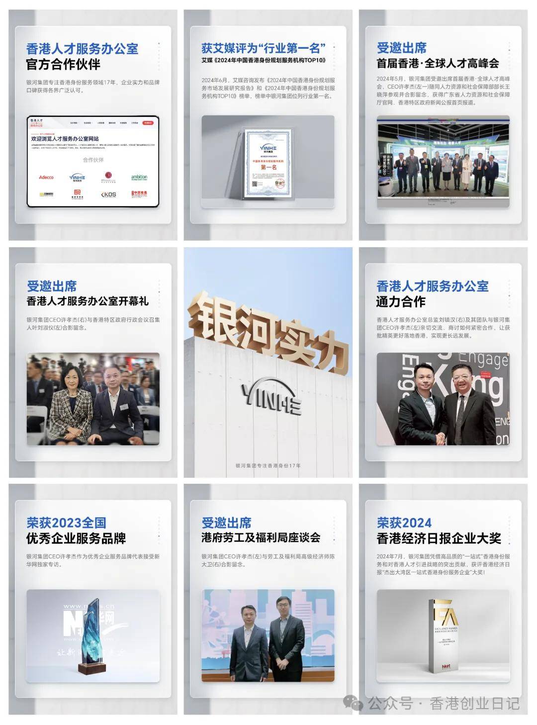 ③知名度第一:银河集团2007年成立,专注香港身份和赴港业务18 年,行业影响力较大,2023年成为香港人才服务办公室合作伙伴。